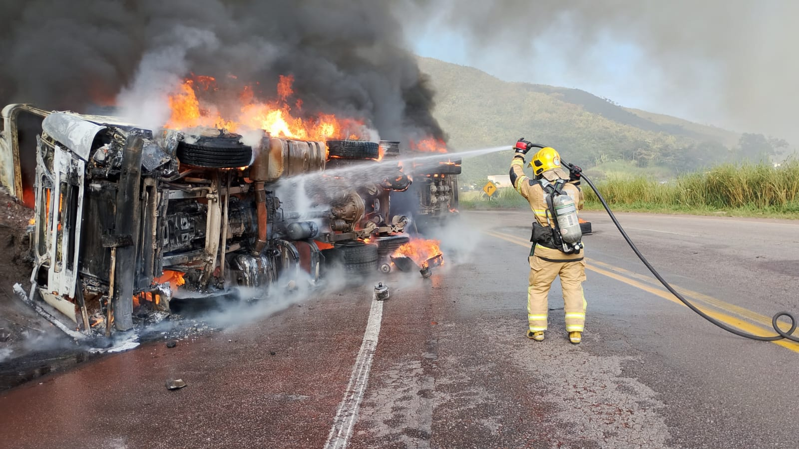 Um grave acidente mobilizou equipes de resgate na manhã de quarta-feira (22) na BR-381. Um caminhão capotou e pegou fogo na altura do km 422, causando a interdição total da rodovia nos dois sentidos e exigindo uma operação rápida do Corpo de Bombeiros e das equipes de apoio.