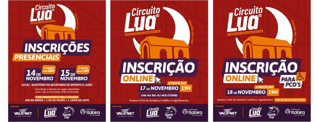 As inscrições on-line abrem no dia 17 de novembro, a partir das 19h, com o link divulgado na página oficial da SMEL no Instagram @sec.esporte_lazer_itabira.