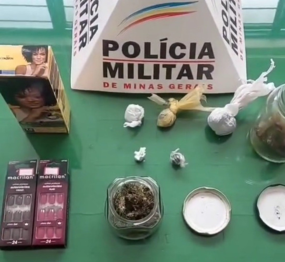 Uma mulher foi presa após ser flagrada furtando unhas postiças e tinta de cabelo em uma farmácia em Baependi, no Sul de Minas, nessa quinta-feira (26 de junho). No momento da prisão, a suspeita portava diversas porções de drogas e também foi detida por tráfico de drogas.