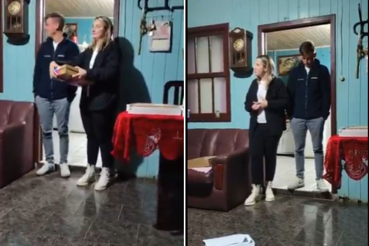 Na gravação que circula na internet, a mulher coloca um pano azul nos ombros do marido, sugerindo inicialmente que estava grávida de um menino. Em seguida, ela surpreendeu a todos ao expor a traição, espalhando pelo chão da casa impressões de mensagens e fotografias que comprovariam o relacionamento paralelo.
