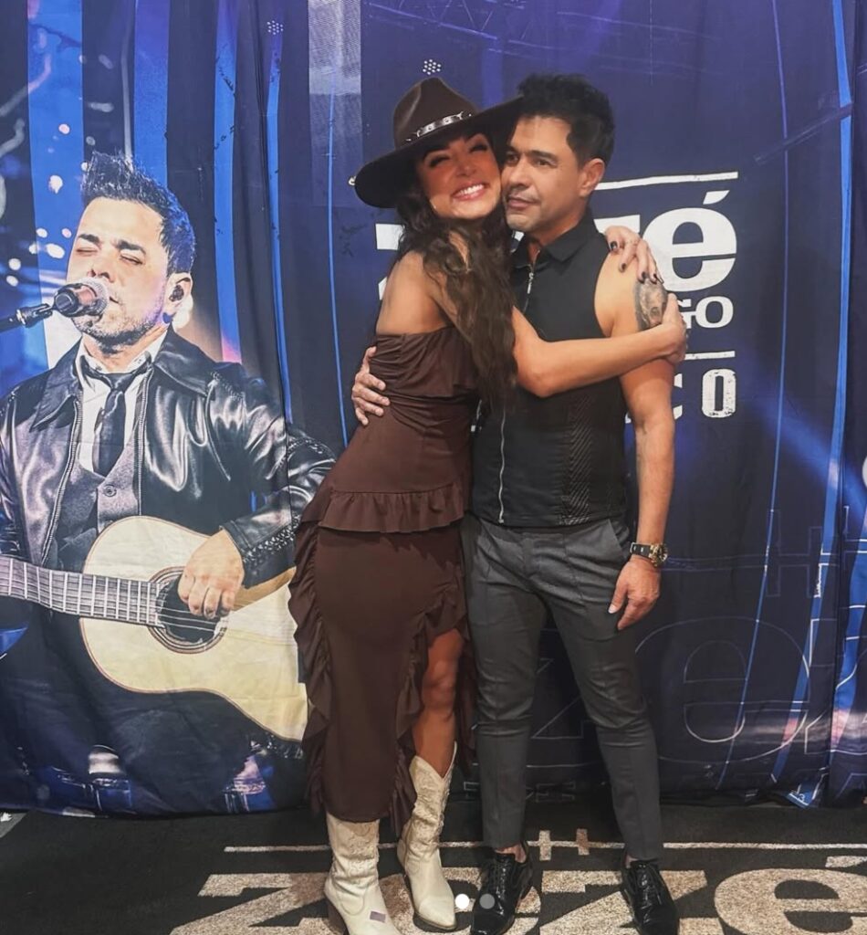 “Eu estava no camarote. No finalzinho do show, resolvi descer [para perto do palco] para ficar mais próxima do Zezé. Pedi uma foto, de longe, e ele disse: ‘Tudo bem, chama ela para o camarim’. Aí o segurança veio e me chamou. Fiquei eufórica, não acreditei. Esperei ele no backstage, aguardando ele finalizar o show. Tinha outras pessoas lá. Fiquei muito emocionada, porque sou muito fã”, disse ela, inicialmente, que continuou: