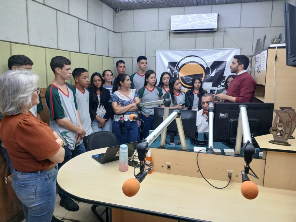 A animada turma do Ensino Médio foi muito bem recepcionada pela gerente Cássia Madeira, que atua há 30 anos na empresa. Ela os conduziu e palestrou sobre o funcionamento da rádio com o setor comercial, desafios encontrados e superados. Os colaboradores apresentaram os estúdios de gravação e o estúdio principal, onde são apresentados os programas. Os adolescentes acompanharam um pouco da apresentação do programa Conexão Regional, com Tatiana Santos e JR, ao vivo. Por sua vez, os locutores Robson Domingos e JR, além do assistente de produção, Juan, explicaram a dinâmica do rádio, além de questões mais técnicas.