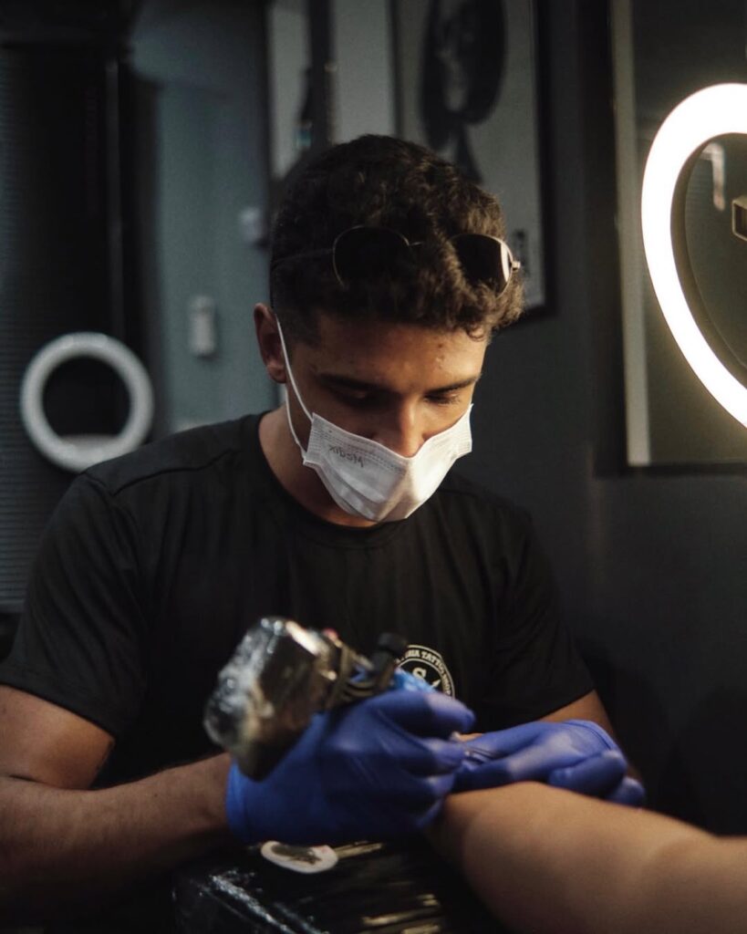 Anos mais tarde, começou a frequentar estúdios de tatuagem, se lembrou do incentivo das pessoas de quando criança, e começou a ‘rabiscar’ a pele de alguns amigos, que eram suas cobaias. Em 2022, abraçou a profissão: “Um pouco mais velho comecei a conhecer o mercado de tatuagem, embarquei nele, entrei de cabeça e estou até hoje. Está dando muito certo”, finaliza. Pelo visto, tintas, agulhas e canetas farão parte de seu futuro.